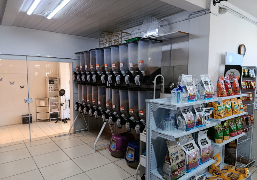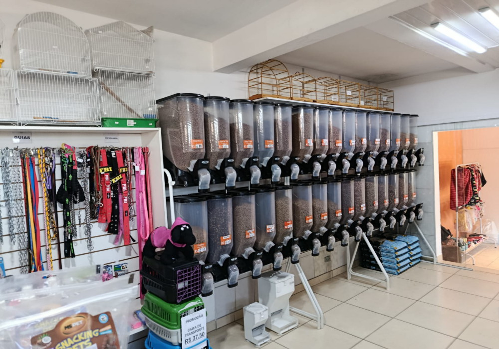 Pet shop em via de fluxo intenso no bairro do Xaxim, possui... Área externa frontal. Deck com cobertura em telha metálica, fechamento total com portão em metal de correr, 2 expositores em metal para casinhas pet, 3 expositores em metal reforçados para ração. Área de Loja. 2 expositores em metal reforçado para ração, 6 expositores para ração a granel com 10 recipientes em acrílico com dosador, 6 gôndolas em metal de centro com 4 prateleiras, 02 gôndolas em metal de parede com 4 prateleiras, expositor aramado, balcão de atendimento com vitrine expositora, balcão de caixa com gaveta, balcão para computador, computador completo com monitor LCD, cadeira com rodas, alarme comercial, câmeras de monitoramento, monitor para câmeras, 01 conjunto 1e prateleiras de parede com 5 prateleiras, balcão em vidro tipo colméia, 02 expositores de parede em madeira MDF para produtos blister, estoque diversificado. Espaço banho e tosa. Porta externa em vidro 4 folhas, porta interna em vidro 4 folhas, 1 cuba de lavar pet, estante expositora MDF com 6 prateleiras, estante expositora MDF de canto 4 prateleiras, 2 sopradores com pés, 1 mesa pequena com tampo emborrachado, 1 mesa grande com tampo emborrachado, balcão em madeira MDF 2 portas, gaiola aramada dupla, caixas de transporte. Espaço Clinica Veterinária. Divisória madeplac com porta, toldo externo, 2 spot externo de iluminação.