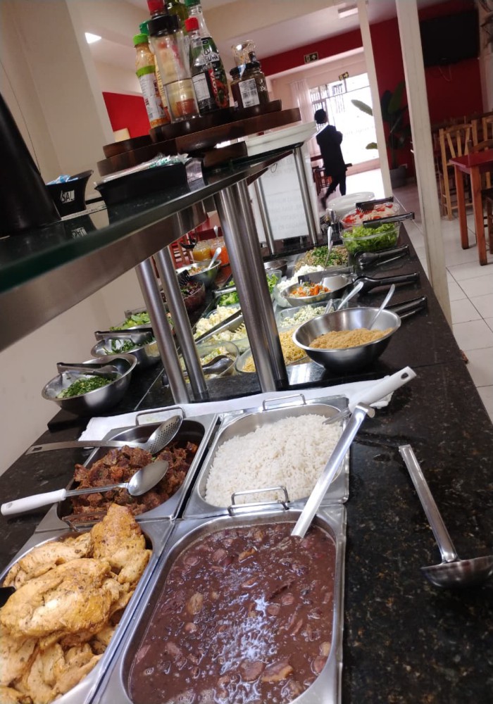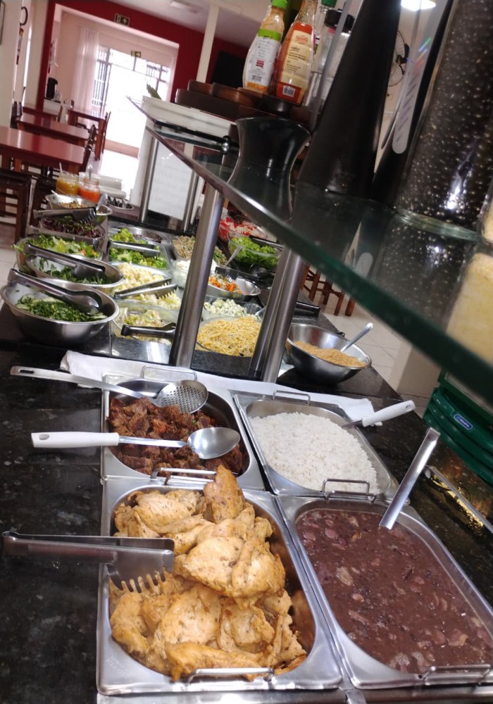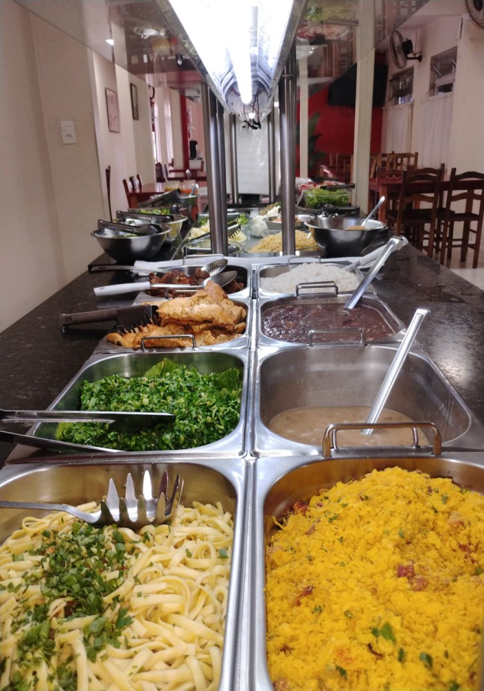 Restaurante Buffet livre em ótimo local com pouca concorrência, esquina, fácil estacionamento, 280m2 de área, ampla área de atendimento com 100 lugares com mesas em madeira, sistema de monitoramento por câmeras, 3 ventiladores de parede, refrigerador vertical de bebidas em comodato, freezer cervejeiro em comodato, 3 extintores de incêndio, televisor LCD 42 polegadas, buffet aquecido com cubas em banho maria tampo em granito e sobre tampo em vidro, buffet pista fria com tampo em granito e sobre tampo em vidro, porta pratos e talheres com tampo em granito, televisor antigo de 29 polegadas, balcão de caixa em madeira MDF com expositor de doces e informatização com computador completo e impressora térmica, banco de jardim frontal. Cozinha com câmara fria em inox com 2 portas, mesa de manipulação com tampo em granito, lava louça em inox com mesa inox, pia tampo em granito e cuba inox, bancada em granito, armários suspensos em madeira MDF, 2 coifas com exaustor, chapa 5 queimadores, 2 fritadeiras, freezer horizontal 2 tampos, forno, fogão industrial 6 bocas, panelas, pratos, talheres e diversos equipamentos.