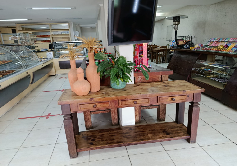 Panificadora – Instalada em uma área de aproximadamente 300m2, possui 2 sanitários, área de atendimento de panificação, televisor LED 40 polegadas, televisor LED 32 polegadas, ventilador de parede 50 cm, aquecedor de ambiente a gás, 2 aparadores em madeira demolição com aproximadamente 3 mts, 1 aparador de madeira demolição com aproximadamente 2 mts, 2 refrigeradores vertical panorâmico de bebidas em comodato, freezer horizontal de sorvetes em comodato, balcão de caixa atendimento em madeira demolição com expositor central de produtos com vidro curvo, 2 expositores de cigarro de parede, 2 computadores completo com impressora térmica e sistema gerencial, deck frontal com pergolado em metal, 3 extintores de incêndio 4 kg, 1 extintor de incêndio 6 Kg, conjunto de balcões de panificação com 5 balcões seco/refrigerado/aquecido/balcão de balança/expositor de pães/balcão de café com tampo em granito e vidro curvo, 2 armários de fundo de panificação em madeira MDF com portas/ prateleiras/ espelhos para armazenamento e exposição de produtos, balança digital, balança digital com etiquetadora, seladora de produtos, expositor de pães em vidro, som ambiente, expositor em ferro e aramado com 4 prateleiras para produtos, 5 mesas quadradas em madeira maciça, 12 cadeiras em madeira maciça, 3 banquetas em metal cromado com assento estofado, baleiro giratório em vidro com 10 divisões, balcão de pia em madeira MDF com 1 gaveta, 3 portas e lixeira com tampo em granito, cafeteira, decoração, lustres. Área de café com 15 mesas quadradas em madeira maciça, 30 cadeiras em madeira maciça, buffet em alvenaria tijolo a vista com chapas de fogão com aquecimento a gás e pista fria, porta balança e atendimento em alvenaria, cadeira infantil em madeira maciça, 01 aparelho de ar condicionado Split, 2 banheiros, lavatório, televisor em LED 40 polegadas, lustres e decoração. Área de produção panificadora Panificação com 2 armários porta formas, Climatizadora, turbo forno de pães, forno de pães TF160, coifa com exaustor, fatiador de frios elétrico inox, forno micro-ondas, pia inox, balcão 2 portas 3 gavetas em madeira MDF, tampo inox, mesa de panificação com pés em ferro e tampo em granito, balança digital, divisora, lixeira com pedal 50 lts, masseira, modeladora, 2 esqueletos de forma, Deposito com diversas prateleiras, pallets, mesa inox, Confeitaria com batedeira de confeitaria profissional, 4 mesas inox, 2 estantes inox com 4 prateleiras, batedeira planetária, balança digital, prateleira suspensa em inox, forno micro-ondas, liquidificador, pia inox com mesa e cuba inox dupla funda, lixeira com pedal 50 lts, refrigerador duplex, freezer vertical, fatiador de pães, Cozinha de panificação com coifa com exaustor, fogão industrial 2 bocas, fritadeira inox, mesa inox, mesa com pés em metal e tampo em granito, chapa a gás 3 queimadores, liquidificador industrial, 2 estantes em aço inox com 4 prateleiras, mesa inox. Fundos com banheiros funcional com armário funcional de 16 portas, armário funcional 12 portas, 2 tambores de coleta 40 litros, 2 lixeiras com rodas e tampa 80 lts. RESTAURANTE, instalado na parte superior do imóvel com aproximadamente 300m2, possui... televisor de LED 40polegadas, 7 mesas redondas em madeira maciça, 1 mesa retangular em madeira maciça 4 lugares, 14 mesas quadrada de 2 lugares em madeira maciça, banco em madeira maciça 3 lugares, 73 cadeiras em madeira maciça, balcão aparador em madeira maciça com 3 portas e 3 gavetas, balcão aparador em madeira maciça final buffet, lareira, 2 extintores de incêndio 4 kg, 2 banheiros, lavatório com 2 cubas 3 espelhos aparador em madeira demolição, balcão atendimento em alvenaria com tampo em granito e pista fria sobremesa, balança digital, refrigerador vertical de bebidas em comodato, computador completo com sistema, buffet em alvenaria com 10 chapas de fogão e pista fria, grill com 4 queimadores fechamento em vidro e coifa com exaustor, balcão inox refrigerado 3 portas, decoração, lustres, pratos, talheres, copos, travessas. Cozinha do restaurante com extintor de incêndio 4 kg, 8 mesas inox, lava louça inox com mesa de suporte, carrinho de apoio cozinha em inox, 4 estantes em aço inox com 4 prateleiras, freezer horizontal com tampo em vidro, fogão industrial 6 bocas, fogão industrial 8 bocas, 3 coifas inox com exaustor, 5 conjunto de prateleiras inox suspensas, fritadeira inox cuba dupla, pia inox com mesa e cuba normal, forno combinado com suporte, processador de alimentos, área de estocagem com estantes em metal 5 prateleiras, pia inox cuba dupla funda, 2 pias inox com mesa e cuba funda, suporte de metal para cabrita, cabrita fatiador, liquidificador industrial Skymsen, extrator de sucos profissional, freezer vertical, refrigerador comercial inox 4 portas, câmara fria com compartimento de resfriamento e de congelamento, panelas, travessas, utensílios, etc.