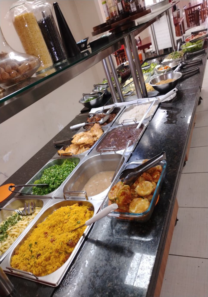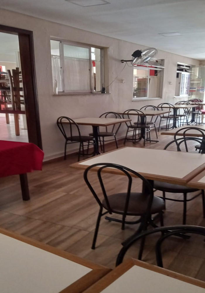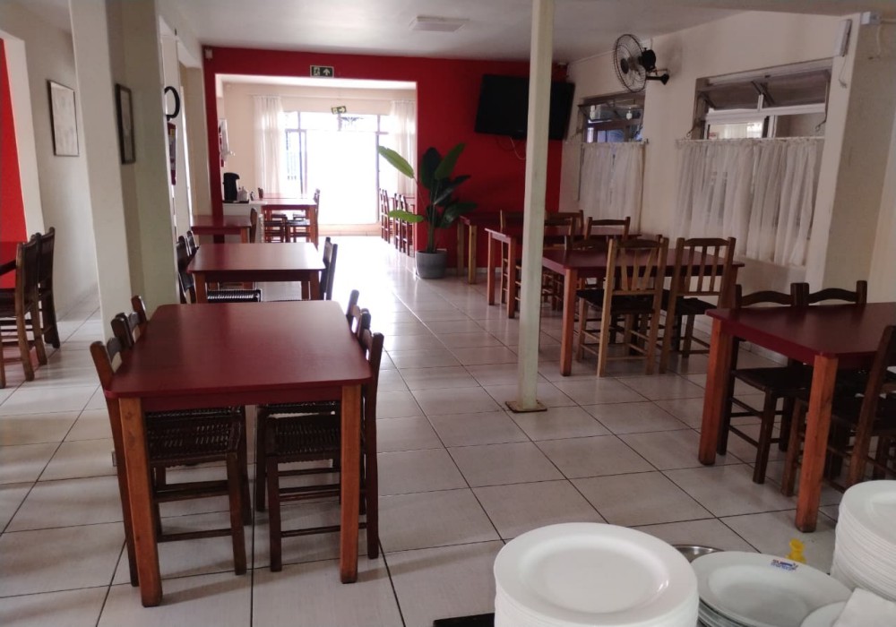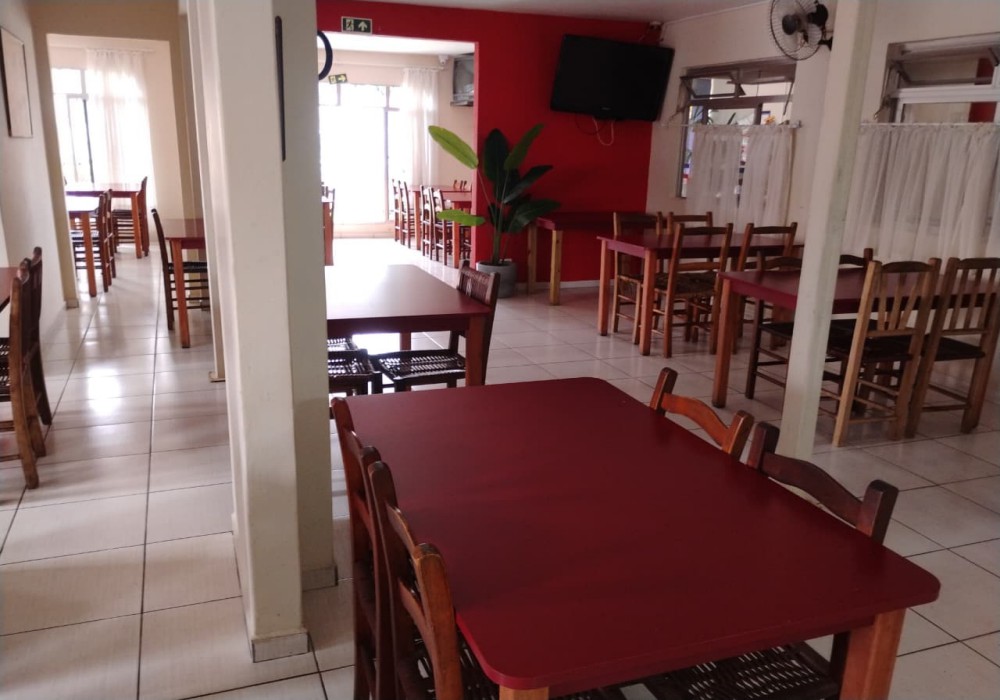 Restaurante Buffet livre em ótimo local com pouca concorrência, esquina, fácil estacionamento, 280m2 de área, ampla área de atendimento com 100 lugares com mesas em madeira, sistema de monitoramento por câmeras, 3 ventiladores de parede, refrigerador vertical de bebidas em comodato, freezer cervejeiro em comodato, 3 extintores de incêndio, televisor LCD 42 polegadas, buffet aquecido com cubas em banho maria tampo em granito e sobre tampo em vidro, buffet pista fria com tampo em granito e sobre tampo em vidro, porta pratos e talheres com tampo em granito, televisor antigo de 29 polegadas, balcão de caixa em madeira MDF com expositor de doces e informatização com computador completo e impressora térmica, banco de jardim frontal. Cozinha com câmara fria em inox com 2 portas, mesa de manipulação com tampo em granito, lava louça em inox com mesa inox, pia tampo em granito e cuba inox, bancada em granito, armários suspensos em madeira MDF, 2 coifas com exaustor, chapa 5 queimadores, 2 fritadeiras, freezer horizontal 2 tampos, forno, fogão industrial 6 bocas, panelas, pratos, talheres e diversos equipamentos.